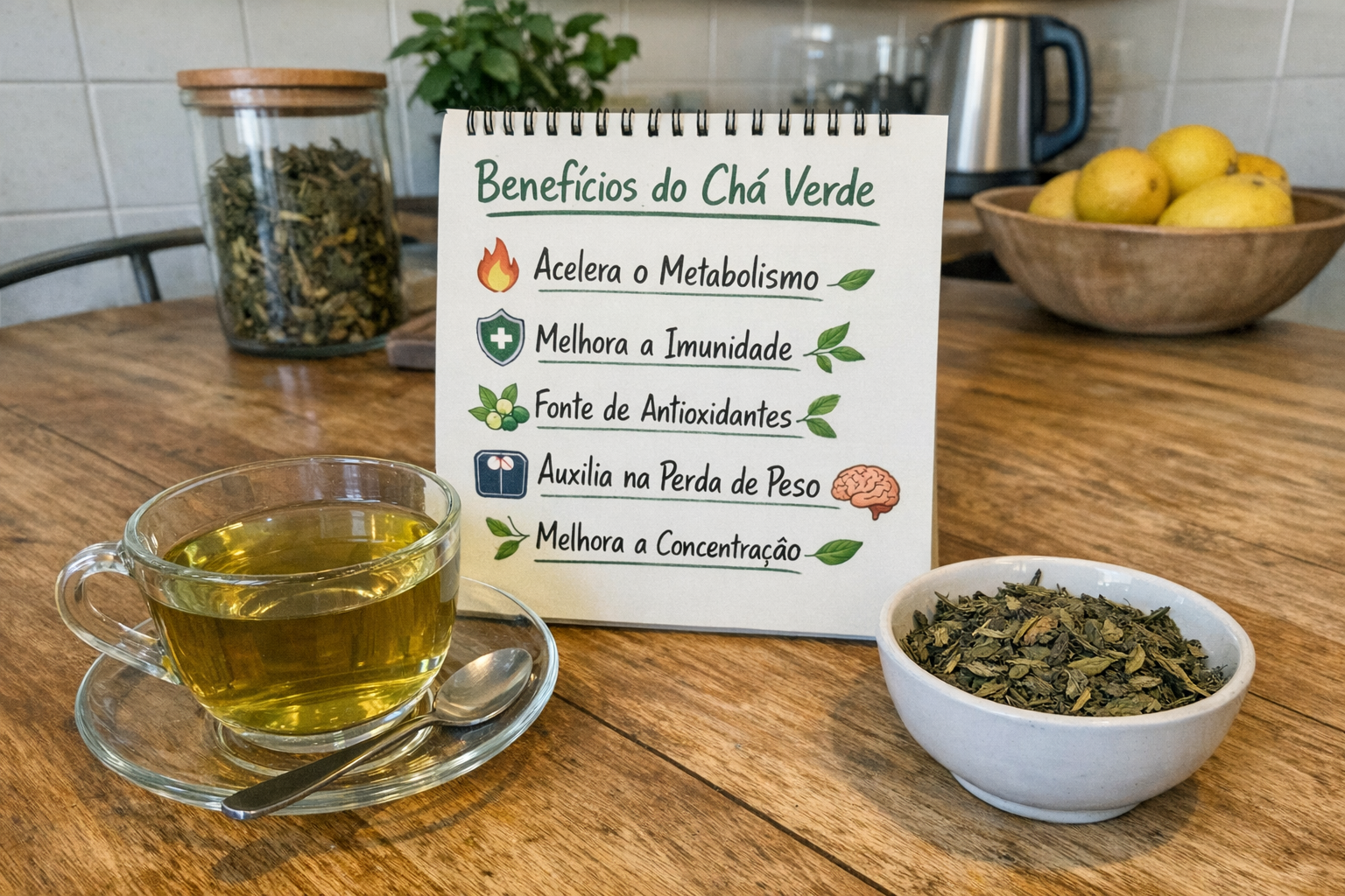 O chá verde é naturalmente rico em antioxidantes, que ajudam a proteger o organismo contra o stress oxidativo do dia a dia.Sensação de bem-estar